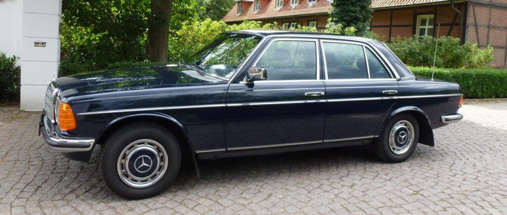 Das Fahrzeug erhielt im August 1982 im Werk Sindelfingen erstmalig seine Erstausrüster Bereifung Marke „Michelin“ und wurde dort direkt an seinen Neuwagenkäufer übergeben. Zuvor hatte sich dieser, den früher schon sehr beliebten Werksführungen angeschlossen und sich dabei bestens beköstigen lassen. Schon damals zählten die diversen „Sonderausstattungen“ wie das Radio MB Audio 30 -Vollstereo- mit Hecklautsprechern und einer Automatischen Antenne ( DM 1.101,75) zu den Highlights und mit dem WD-Glas einer VSG Heckscheibe, Kopfstützen im Fond und dem mechanischen Schiebedach ließen sie den Fahrer auf seinen bequemen Federkernsitzen und einer orthopädischen Fahrerlehne fortan wunderbar bequem und stilvoll reisen.