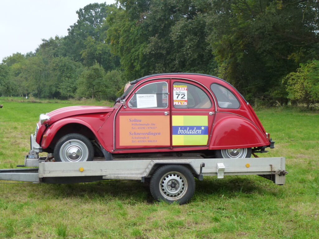 Citroën 2CV vom Bioladen aus Schneverdingen in der Lüneburger Heide.